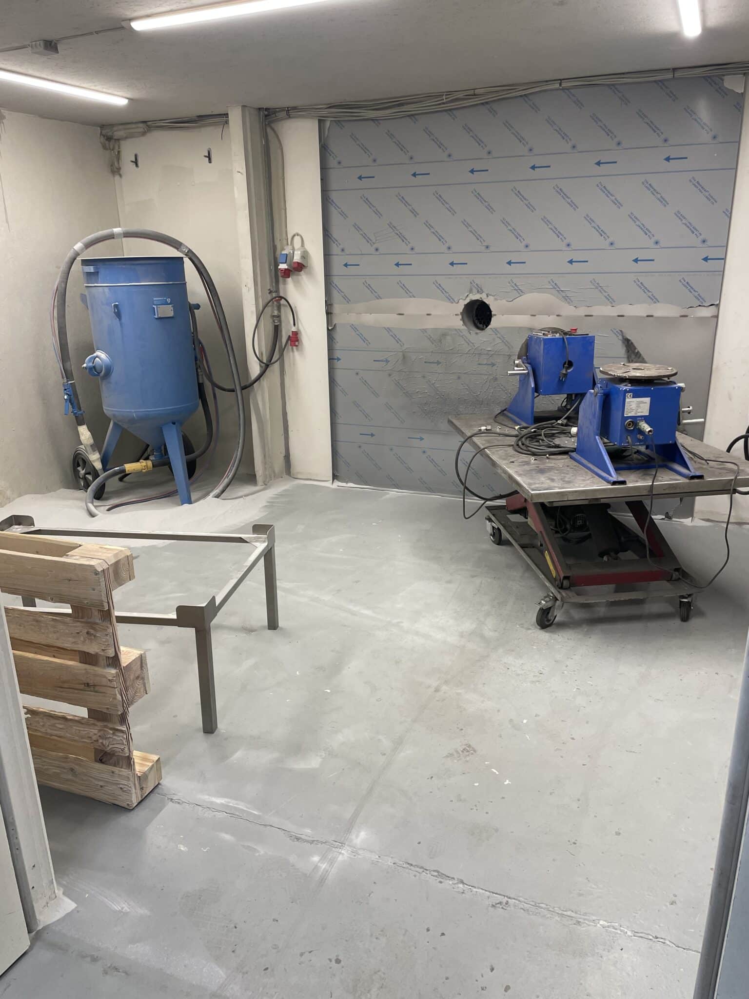 Vores rustfrie blæsekabine tilbyder et fødevarekvallitet godkendt miljø, hvor bla. vores rundborde giver muligheden for en 100% ensartet overflade HVERGANG.